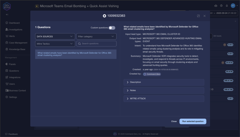 The difference between successful attack prevention and catastrophic system compromise often comes down to asking the right questions at the right time. With Command Zero's Teams vishing investigation queries, your security team gains: