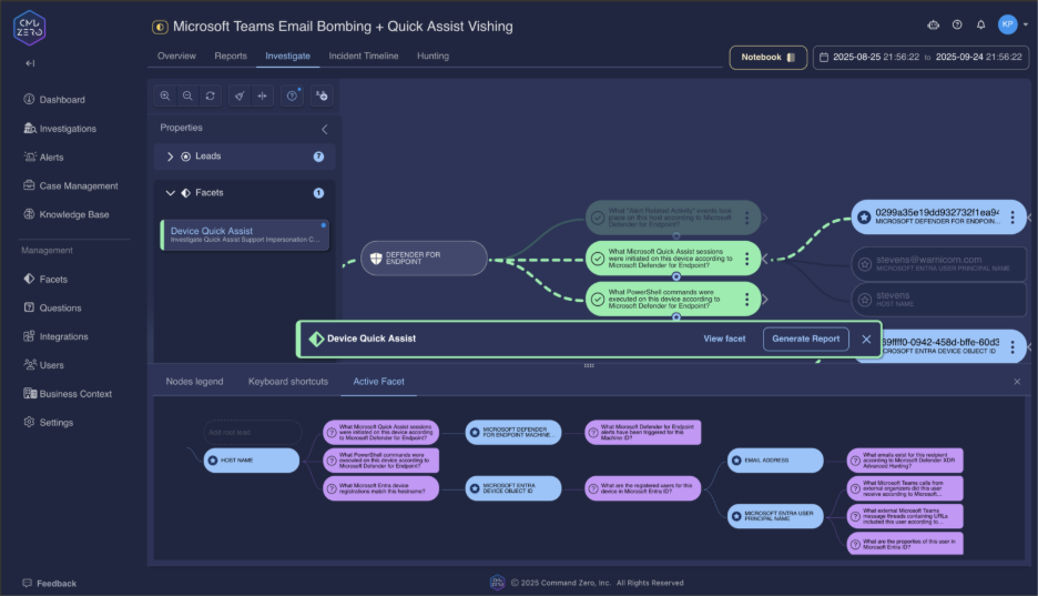 Command Zero's Teams vishing queries provide more than detection—they deliver actionable intelligence for immediate response: